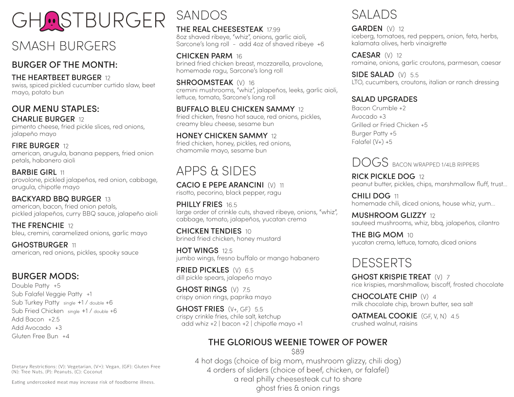 Ghostburger Menu